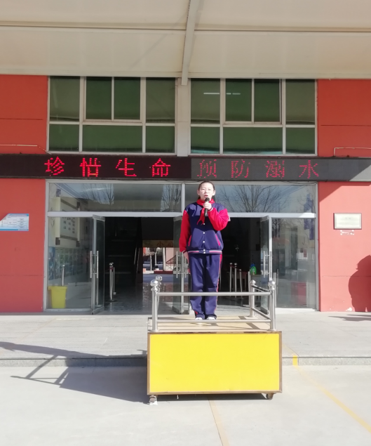 本周升旗仪式的主题是珍惜生命,预防溺水。伴随着出旗曲,旗手们迈着整齐矫健的步伐走来,个个都是英姿飒爽。随着雄壮的《国歌》奏响,全场肃立向国旗敬队礼,少先队员们唱着国歌注视着五星红旗冉冉升起。升旗结束后,六一中队少先队员田儒熠在国旗下发言。她以饱满的精神、充沛的感情呼吁大家在游泳锻炼的同时一定要注意安全,学会溺水急救知识,牢记安全溺水“六不准”,在心中永筑一道安全防线,提高安全意识,防患于未然。