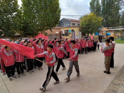党组织代表王明星校长为新建中队授中队旗。