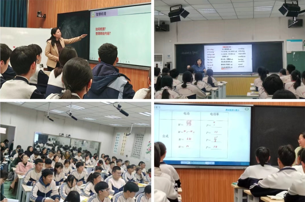 活动采取"课堂展示+深度评课"双轨模式,六位骨干教师培养对象呈现了特色鲜明的复习示范课。英语学科司景红、初秀梅两位教师分别执教八年级《Module 11 Way of life》《Module 3 Sports》单元复习课,通过基础梳理与语篇分析相结合的教学设计,创新运用多元评价机制,有效提升学生英语学科核心素养。物理学科杨立飞、韩英教师分别开展《7-9章重点实验复习》及《电功率复习》教学,以生活化情境导入,采用自主探究式学习策略,实现物理概念的具象化呈现与深度学习。地理学科郭曰峰老师以《日本》区域地理为课例,通过情境创设和递进式问题链设计,培养学生区域认知与综合思维能力。